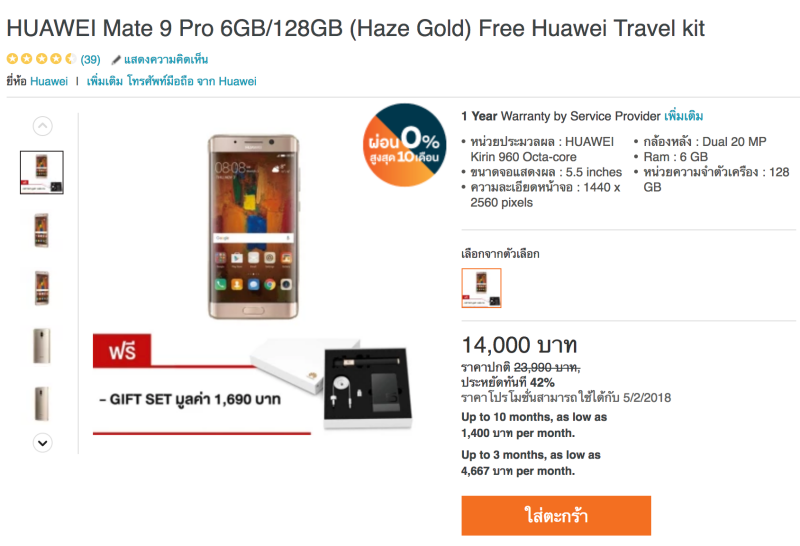 มีมือถือสเปคดี ราคาพิเศษมาฝากกันอีกแล้วครับ HUAWEI Mate 9 Pro 6GB/128GB ราคาพิเศษเหลือเพียง 13,300 บาท
