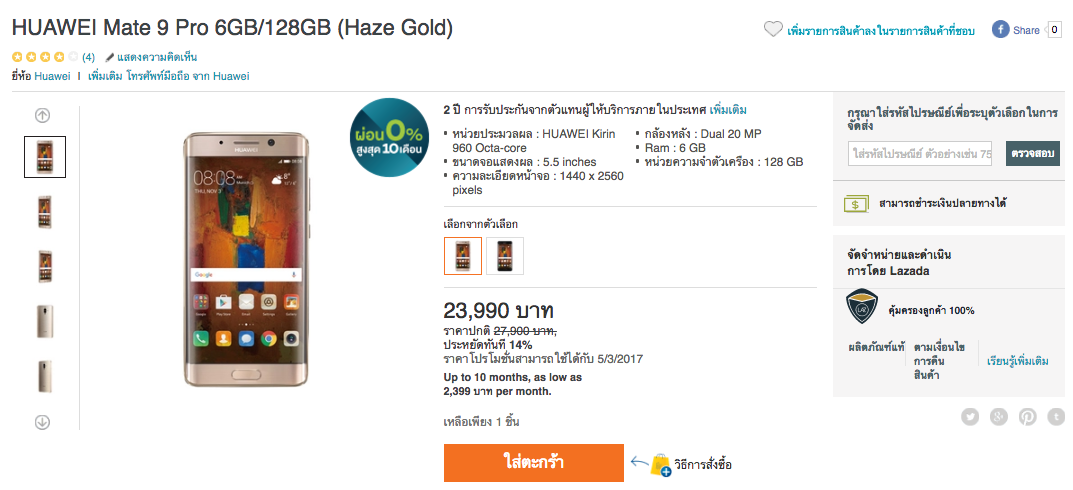 ใครสนใจรุ่นนี้รีบจิ้มเข้าไปก่อนของหมด! http://www.lazada.co.th/huawei-mate-9-pro-6gb128gb-haze-gold-11483260.html