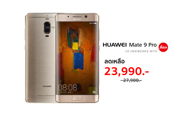 ชี้เป้ารุ่นเด็ดราคาโดนใจในวันนี้เป็นรุ่น Huawei Mate 9 Pro แรม 6GB และความจุตัวเครื่อง 128GB ลดเหลือ 23,990 บาท (จาก 27,900 บาท) พร้อมประกันตัวเครื่องนานถึง 2 ปี