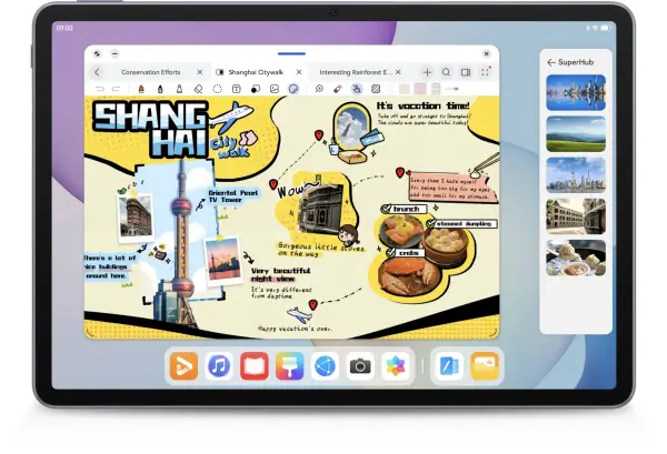 HUAWEI MatePad 11.5 2025 (Standard Edition) พร้อมมอบความคุ้มค่าเหนือใครในการทำงาน ด้วยแอปพลิเคชัน PC-Level WPS Office ที่ก้าวข้ามขีดจำกัดของแอปทำงานเอกสารทั่วไปด้วยคุณสมบัติการใช้งานที่เทียบเท่ากับแอปบนเครื่องพีซีเต็มรูปแบบ รับมือได้ทั้งการคิดสูตรในตารางหรือทำพรีเซนเทชันสุดเนี้ยบ จึงแชร์ไฟล์งานได้แบบหายห่วง นอกจากนี้ PC-Level WPS Office บน HUAWEI MatePad 11.5 2025 (Standard Edition) ยังรองรับการใช้งานแบบหลายหน้าต่างเหมือนบนพีซี จึงสามารถทำงานกับหลายไฟล์พร้อม ๆ กันบนหน้าจอได้ และจัดเรียงหน้าต่างให้ลุยงานได้ถนัดมือ สบายตากว่าแอปแท็บเล็ตทั่วไป และด้วยฟีเจอร์ Floating Multi-Window คุณสามารถเปิดแอปใช้งานพร้อมกันได้สูงสุดถึง 4 หน้าต่าง จึงเขียนงาน อ่านโน้ตที่จดไว้ ค้นหาข้อมูลเพิ่มเติมในเว็บ หรือแม้แต่คุยกับเพื่อนร่วมทีมไปพร้อมกันได้ ด้วยหน้าจอเต็มตาขนาด 11.5 นิ้ว และแอปมากมายกว่า 1 ล้านแอปที่รอให้ดาวน์โหลดใช้งานได้อย่างรวดเร็ว ปลอดภัย มั่นใจ ผ่าน AppGallery
