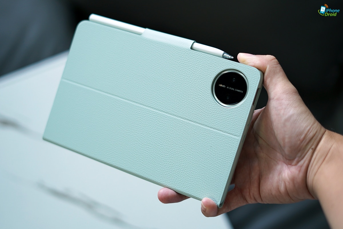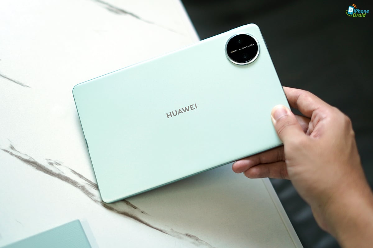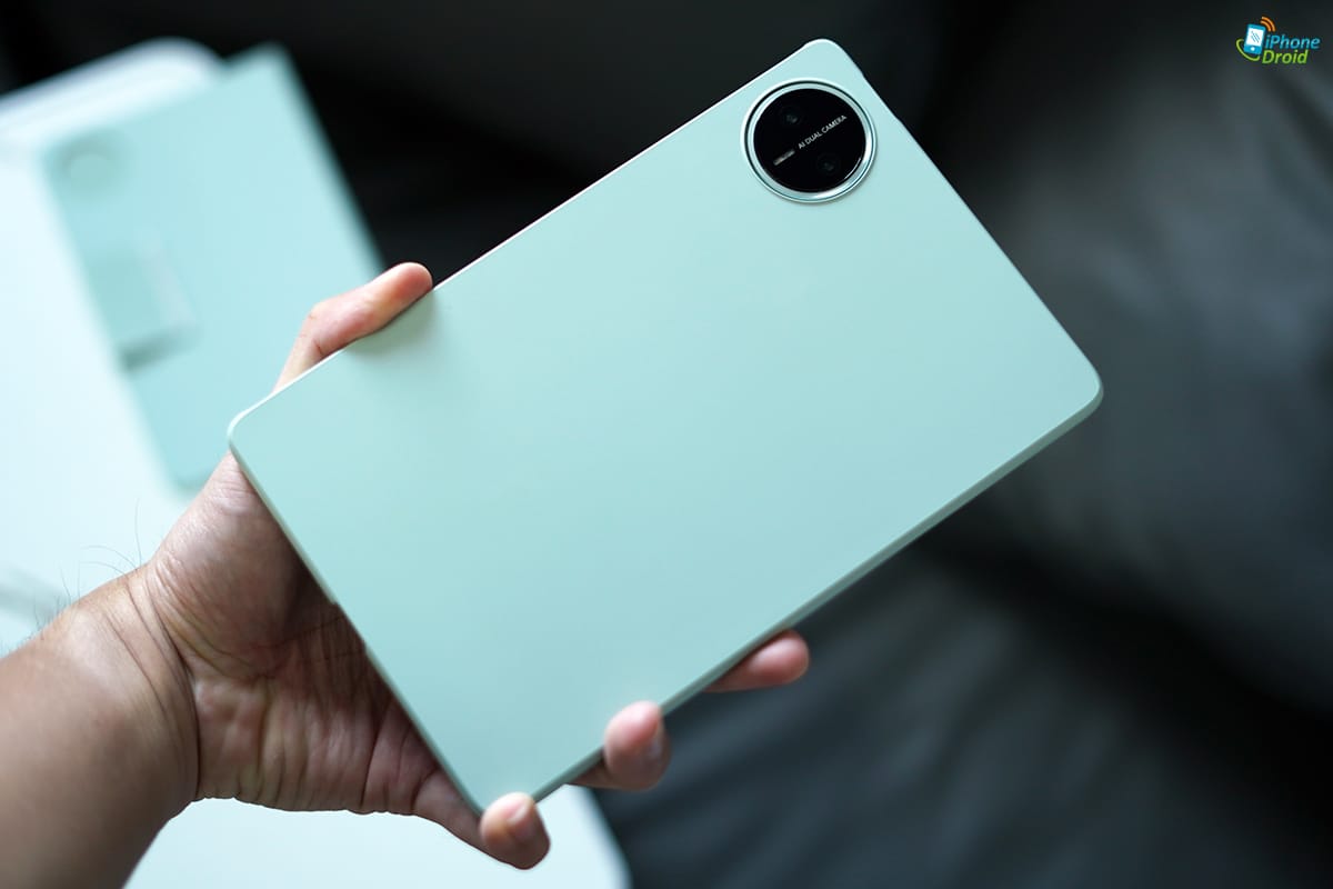 ส่วนโมดูลกล้องก็เหมือนยกเอกลักษณ์มาจาก MatePad Pro เลย ด้วยทรงวงกลมขนาดใหญ่ มีกล้องหลังคู่ แบ่งเป็น กล้องหลัก 50MP + กล้อง Ultra Wide 8MP เลยนะ ระดับเดียวกับพวกมือถือไฮเอนด์เชียว