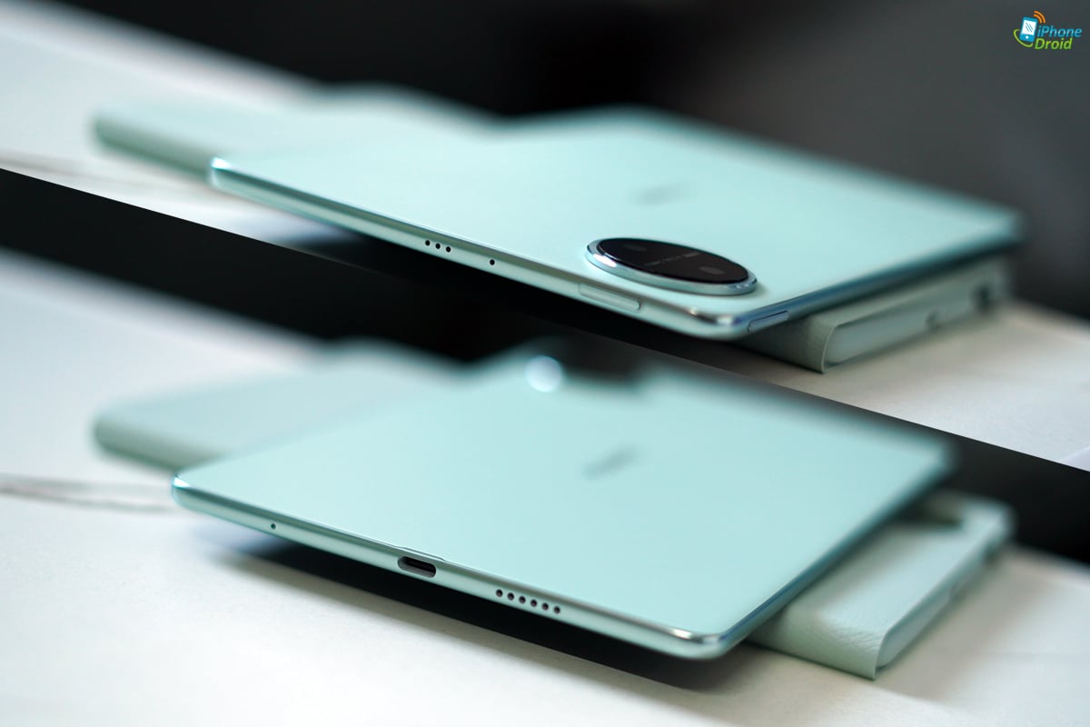 แน่นอนว่าจอพอเหมาะ มีขอบบางเฉียบแบบนี้ ก็ทำให้ตัวเครื่องมีความกะทัดรัดน่าพกพาอย่างมาก แถม HUAWEI MatePad Mini ยังมีน้ำหนักที่เบาเพียง 260 กรัม หยิบจับครั้งแรกต้องบอกเลยว่า อึ้งกับน้ำหนักมาก เบาหวิว ไม่ต่างจากพวกสมาร์ทโฟนเรือธงที่ใส่เคสหนา ๆ เลย แต่นี่คือแท็บเล็ตจอเกือบ 9″ นะ!