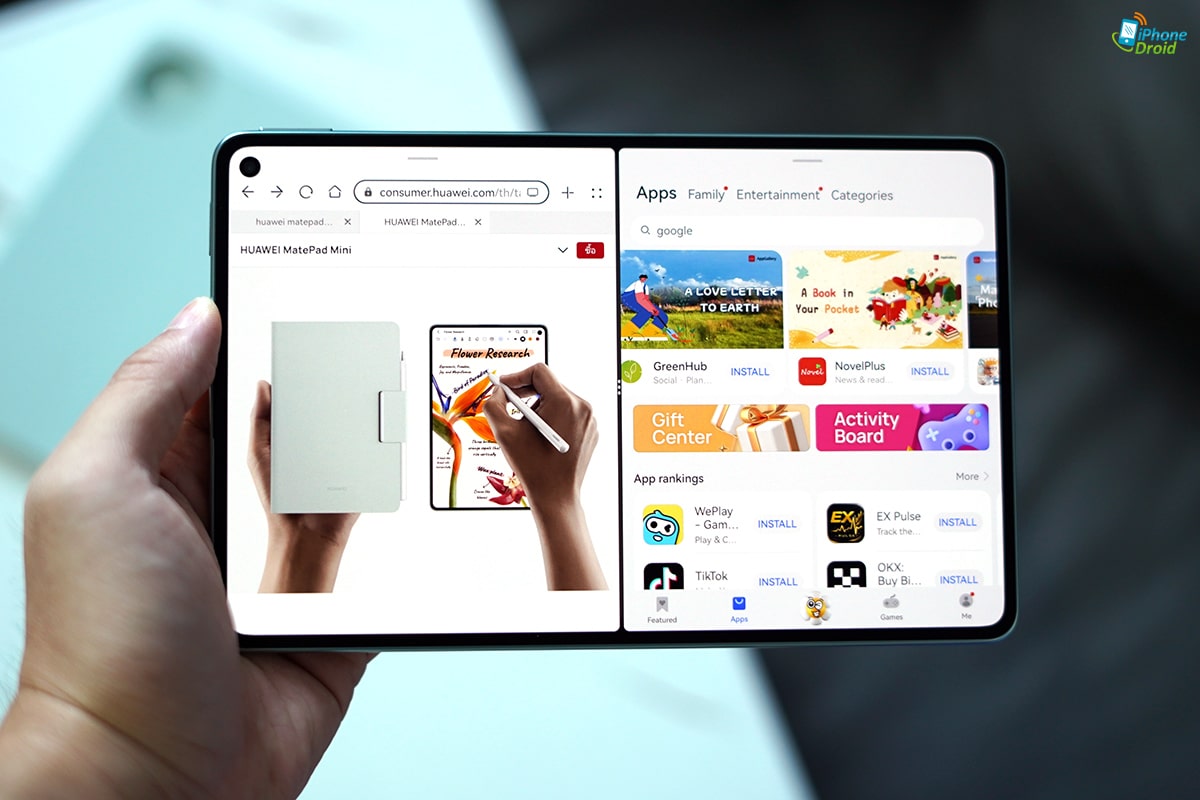ส่วนเรื่องบริการ HUAWEI MatePad Mini ก็ยังใช้ผ่าน HMS (HUAWEI Mobile Services) เหมือนแท็บเล็ตใหม่ ๆ ของ HUAWEI นั่นแหละ โดยจะมี HUAWEI AppGallery เป็น Store หลักในการดาวน์โหลดแอป ปัจจุบันก็มีแอปหลัก ๆ ให้ดาวน์โหลดค่อนข้างครบ หรือถ้าบางแอปหาแล้วยังไม่เจอก็จะมี Petal Search เป็นตัวเลือกในการค้นหาแอปเพื่อดาวน์โหลดมาติดตั้งเพิ่มเติมครับ