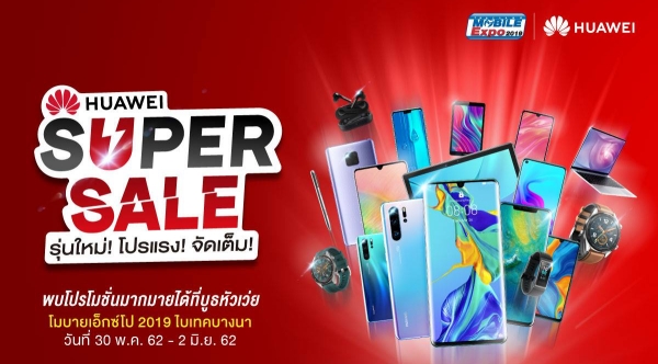 หัวเว่ยจัดโปรโมชั่นสุดพิเศษสำหรับสมาร์ทโฟนรุ่นฮิต พร้อมเปิดตัวผลิตภัณฑ์ใหม่ ในงาน Thailand Mobile Expo 2019 ระหว่างวันที่ 30 พ.ค. – 2 มิ.ย. ณ ไบเทค บางนา พร้อมยืนยันความมั่นใจ โทรศัพท์ทุกรุ่นที่หัวเว่ยได้จำหน่ายไปแล้วและยังขายอยู่ในปัจจุบัน เช่น HUAWEI P30 Series, HUAWEI Mate 20 Series, HUAWEI nova Series และ HUAWEI Y Series ยังสามารถใช้บริการต่างๆ ของ Google เช่น YouTube, แผนที่, Gmail, Google Driveได้ตามปกติ