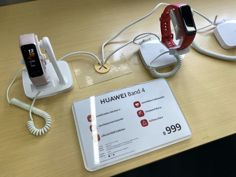 - HUAWEI Band 4 สายรัดข้อมืออัจฉริยะที่ทำหน้าที่เสมือนผู้ช่วยส่วนตัวเพียงปลายสัมผัส แสดงผลอย่างสวยงามด้วยฟังก์ชั่น Creative Face บนหน้าจอทัชสกรีน ที่สามารถปรับแต่งให้เข้ากับตนเองได้ด้วย Huawei Watch Face Store และไม่พลาดทุกการติดต่อด้วยการรับสายและโทรออก แจ้งเตือนเรียลไทม์ ชาร์จได้อย่างง่ายดายด้วยฟังก์ชั่น Plug and Charge ด้วย built-in USB ใช้ได้นานถึง 6 วัน วิเคราะห์อัตราการเต้นของหัวใจได้อย่างแม่นยำด้วย HUAWEI TruSeen™ 3.5 และแจ้งเตือนหากการเต้นของหัวใจสูงผิดปกติ ให้การนอนหลับมีประสิทธิภาพมากยิ่งขึ้นด้วย Night Mode และฟังก์ชั่นวิเคราะห์อัตราการเต้นของหัวใจขณะนอนหลับได้ด้วย HUAWEI TruSleep™ 2.0 เพลิดเพลินกับการออกกำลังกายด้วยโหมดออกกำลังกายถึง 9 รูปแบบ โดย HUAWEI Band 4 จะวางจำหน่ายทั้งหมด 3 สี ได้แก่ สีดำ, สีขาว และสีส้ม ในราคา 999 บาท