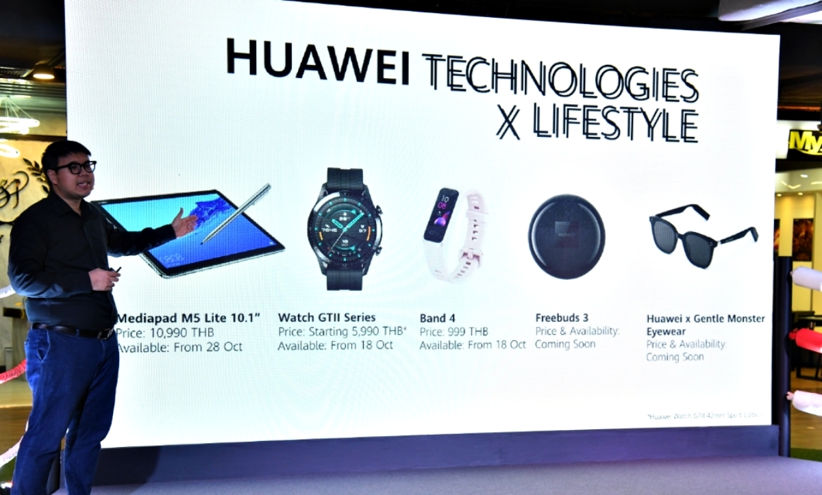 HUAWEI เปิดตัวสมาร์ทแกดเจ็ตหลากหลายรุ่น อัดแน่นด้วยนวัตกรรมในดีไซน์พรีเมียมเอาใจคนรักสุขภาพและแฟชั่นในราคาที่เป็นมิตร ไม่ว่าจะเป็น HUAWEI Watch GT 2 สมาร์ทวอชรุ่นใหม่ล่าสุด มีให้เลือกหลากหลายดีไซน์เข้ากับทุกสไตล์การแต่งตัว, HUAWEI Band 4 สายรัดข้อมืออัจฉริยะเพื่อสุขภาพ ทำหน้าที่เสมือนโค้ชวิ่งส่วนตัว, HUAWEI FreeBuds 3 หูฟังไร้สายตัวแรกของโลกที่อัดแน่นด้วยขุมพลังจากชิปเซ็ต Kirin A1 และเทคโนโลยี Active Noise Cancellation, HUAWEI x Gentle Monster Eyewear แว่นตากันแดดอัจฉริยะที่HUAWEIได้ร่วมมือกับแบรนด์แว่นตาชั้นนำอย่าง Gentle Monster และ HUAWEI MediaPad M5 Lite 10 แท็บเล็ตตัวจริงเรื่องความบันเทิงจัดเต็ม จัดงานเปิดตัวที่ MTM Academy พร้อมกับเคล็ดลับการออกกำลังกายจากเทรนเนอร์มือโปร