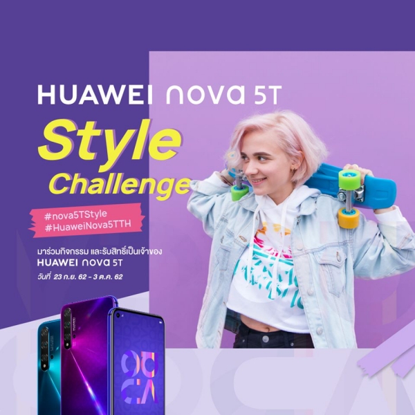 หลังจากที่หัวเว่ยได้เปิดตัว HUAWEI nova 5T สมาร์ทโฟนขุมพลังแฟลกชิป กล้อง AI 5 ตัว ในดีไซน์สุดชิค และได้วางจำหน่ายให้จับจองเป็นเจ้าของเป็นที่เรียบร้อยแล้ว หัวเว่ยได้จัดกิจกรรมออนไลน์โดยเชิญชวนผู้ใช้ HUAWEI nova 5T ทั้งสายแฟ สายแชะ และเหล่าเกมเมอร์มาร่วมสนุกกันใน HUAWEI nova 5T Challenge ได้ตั้งแต่วันนี้ – 3 พฤศจิกายน 2562