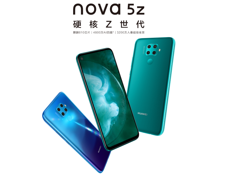 Huawei Nova 5z มาพร้อมกับหน้าจอแสดงผล Punch Hole แบบ LCD ขนาด 6.26 นิ้ว ความละเอียด FHD+ (2340 x 1080 พิกเซล) ภายในขับเคลื่อนด้วยหน่วยประมวลผล Kirin 810 Octa Core ความเร็ว 1.88GHz บนสถาปัตยกรรมขนาด 7 นาโนเมตร, RAM 6GB + ROM 64/128GB สามารถเพิ่ม NM Card ได้สูงสุด 256GB และมีแบตเตอรี่ความจุ 4000mAh รองรับ Fast Charge 20W