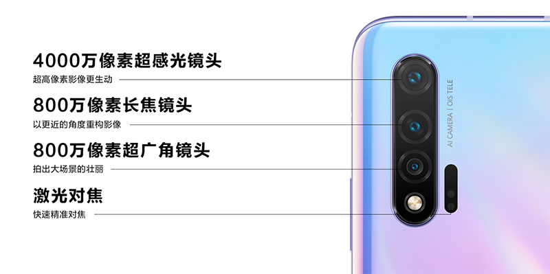ด้านกล้องมีให้ 3 เลนส์ แบ่งเป็นเลนส์หลักความละเอียด 40 ล้านพิกเซล เซ็นเซอร์แบบ RYYB รูรับแสง f/1.7 สามารถดับ ISO ไปมากสุดถึง 204800 + เลนส์ Ultra-Wide 120 องศา ความละเอียด 8 ล้านพิกเซล + เลนส์ Telephoto ความละเอียด 8 ล้านพิกเซล ซูมได้สูงสุด 30 เท่า และรองรับ OIS