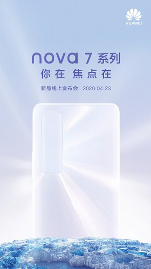 Huawei เตรียมเปิดตัวสมาร์ทโฟนตัวกลางใน nova Series รุ่นใหม่ถึง 3 รุ่น ได้แก่ nova 7, nova 7 SE และ nova 7 Pro ซึ่งมีการยืนยันว่าจะเปิดตัวในวันที่ 23 เมษายนนี้ที่ประเทศจีน