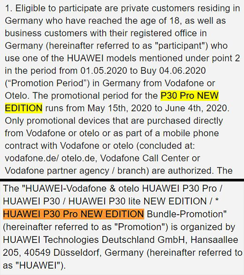 ในช่วงต้นปีที่ผ่านมา Huawei เปิดตัว P30 Lite New Edition ขึ้นมา ล่าสุด มีข้อเสนอบนเว็บไซต์ Huawei ประเทศเยอรมนี ปรากฏว่าจะมีรุ่น P30 Pro New Edition อยู่ด้วย