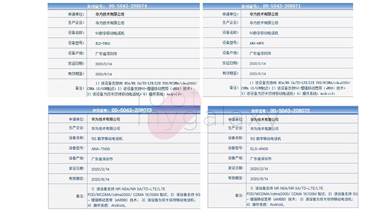 HUAWEI P40 และ P40 Pro ปรากฏบน TENAA รองรับเครือข่าย 5G แบบ Dual-mode