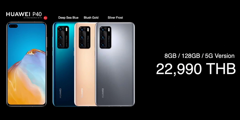 - HUAWEI P40 (RAM 8GB + ROM 128GB) : 22,990 บาท