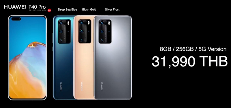 - HUAWEI P40 Pro (RAM 8GB + ROM 256GB) : 31,990 บาท