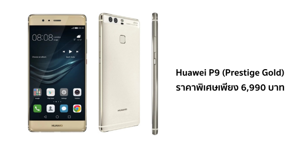 ตอนนี้ Huawei P9 ความจุ 32GB (Prestige Gold) ลดราคาพิเศษมาฝากกันครับ ปกติขายราคา 16,990 บาท ลดเหลือเพียง 6,990 บาท