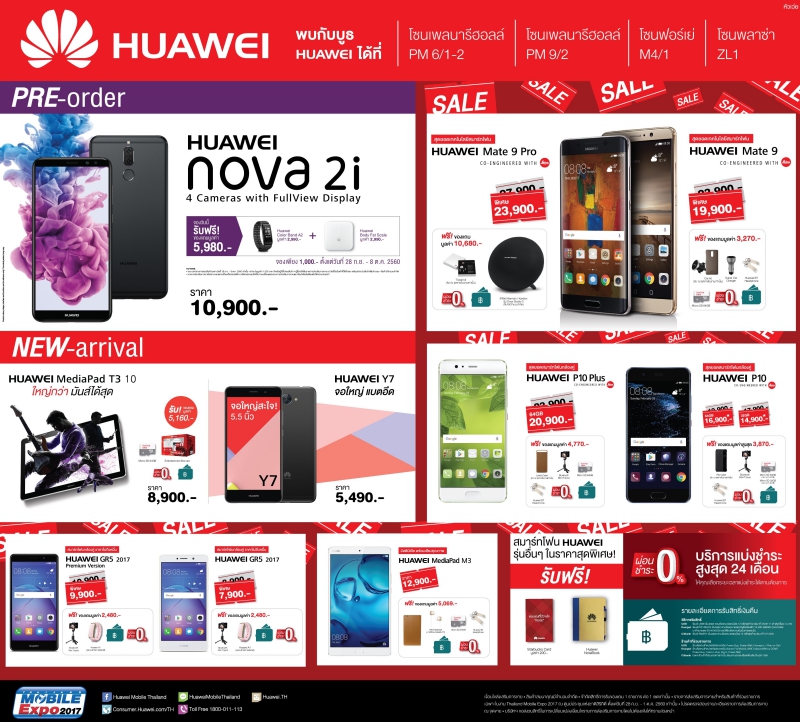 Huawei ส่งโปรโมชั่นสุดร้อนแรง ทั้งส่วนลดค่าเครื่อง และของแถมเพียบในงาน Thailand Mobile Expo 2017 และพบกับการเปิดตัวสมาร์ทโฟนน้องไฟแรง nova 2i ในงาน