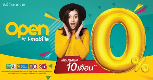 2) ** สามารถผ่อนผ่านบัตรเครดิตที่ร่วมรายการ 0% นานสูงสุด 6-10 เดือน ขึ้นอยู่กับเงื่อนไขแต่ละธนาคาร เคทีซี ,กรุงศรีฯ, กสิกรฯ,เฟิร์สช้อย เฉพาะที่ร้าน Open by i-mobile เท่านั้น