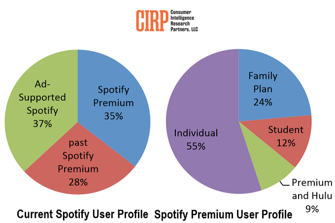 ไมค์ เลวิน หุ้นส่วนคนอื่นๆ และผู้ร่วมก่อตั้ง CIRP ระบุว่าความสำเร็จของ Spotify ขึ้นอยู่กับการลงทะเบียนผู้ใช้บริการฟรีที่มีการสนับสนุนด้านโฆษณาอย่างต่อเนื่องและเปลี่ยนผู้ใช้เหล่านั้นไปเป็นลูกค้าระดับพรีเมียม ปัจจุบัน บริษัทวิจัยคำนวณว่าในสหรัฐอเมริกาผู้ฟัง Spotify ที่สนับสนุนโฆษณาจำนวน 11% เริ่มสมัครทดลองใช้ Premium 74% ของการทดลองสมาชิก จะมีการต่อสมาชิกเมื่อสิ้นสุดการทดลองใช้ และ 16% ของสมาชิกพรีเมียมที่ชำระเงินสิ้นสุดการสมัครรับข้อมูลและเปลี่ยนกลับเป็น Spotify ที่สนับสนุนโฆษณาหรือหยุดใช้ Spotify แบบพรีเมียม