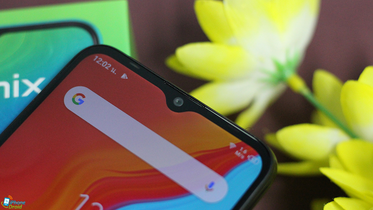 บริเวณรอบเครื่องแบบคร่าวๆ ของ Infinix Hot 8 เราขอเริ่มด้วยที่บริเวณเหนือหน้าจอที่มาพร้อมกับทรงหยดน้ำ พร้อมด้วยลำโพงที่อยู่เหนือขึ้นไป