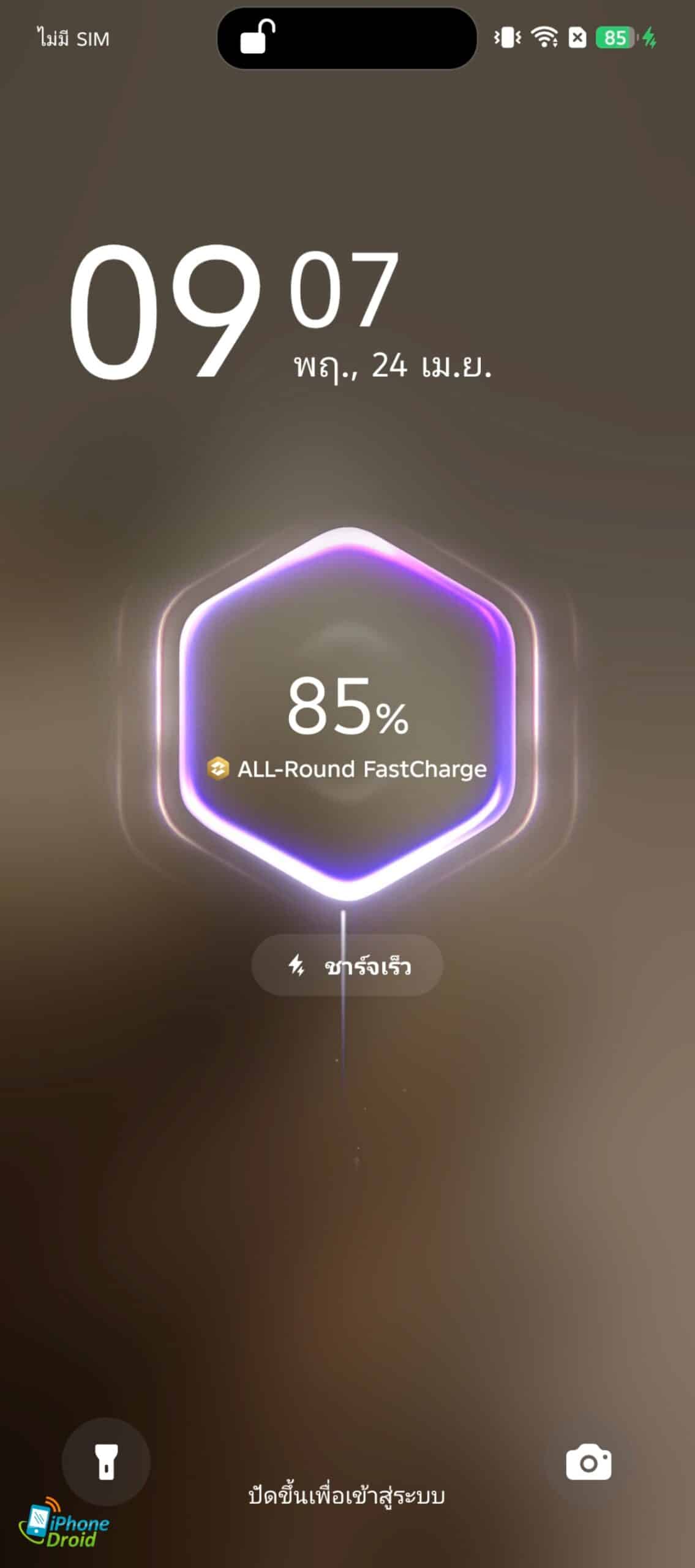ยังมาพร้อมเทคโนโลยีการชาร์จเร็วผ่านสายถึง 100W All Around FastCharge 3.0 โดยเป็นความเร็วที่สูงมากๆ จากการทดสอบชาร์จจาก 21% ผ่านไปแค่ 2 นาทีก็ได้มาแล้ว 28% และเมื่อผ่านไป 20 นาที ก็ได้แบตถึง 70% จากนั้นเราก็ชาร์จให้เต็ม 100% รวมแล้วใช้เวลาไปเพียง 37 นาทีเท่านั้น !!