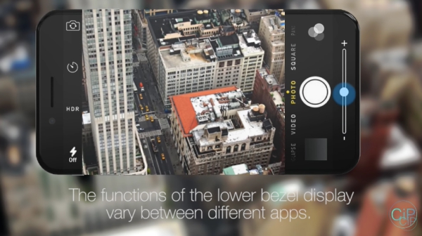 จุดน่าสนใจของคอนเซ็ปต์นี้คือมีแผงสัมผัสอยู่บริเวณล่างหน้าจอสำหรับแตะใช้งานเพื่อควบคุมการใช้งานร่วมกับฟังก์ชั่นบางอย่างหรือแอพพลิเคชั่นบางตัวได้ ซึ่งก็จะคล้าย ๆ กับ Touch Bar ที่มีอยู่ใน MacBook รุ่นใหม่ และ Touch ID สำหรับสแกนลายนิ้วมือก็ถูกผสานรวมไปกับกระจกหน้าจอ