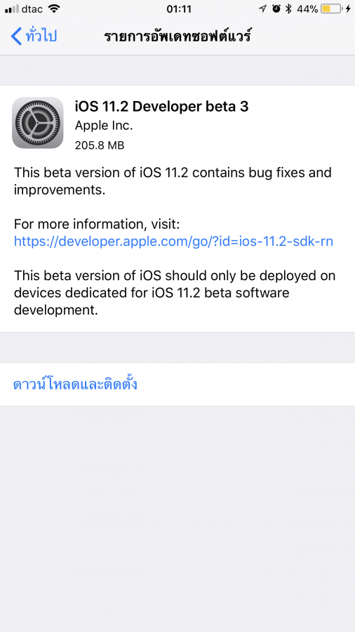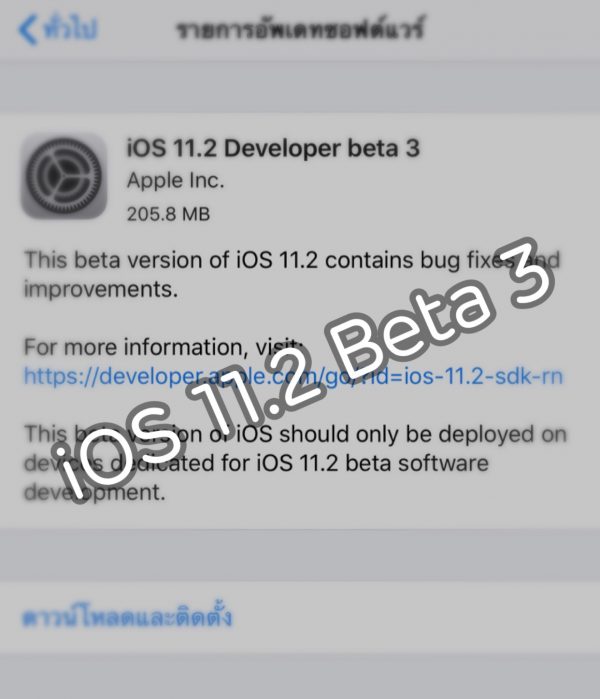 iOS 11.2 Beta 3 นี้ยังเป็นเวอร์ชั่นทดลองใช้อยู่ ใครที่ลงโปรไฟล์ Beta เอาไว้แล้วสามารถกดอัพเดทได้เลยที่ Settings(การตั้งค่า) > General(ทั่วไป) > Software Update(รายการอัพเดทซอฟต์แวร์)