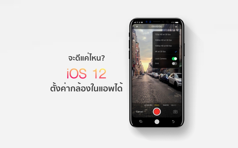 ตามคอนเซ็ปต์ iOS 12 ที่นำเสนอเกี่ยวกับการตั้งค่ากล้องสามารถทำได้จากภายในแอพพลิเคชั่นกล้องถ่ายรูป ทำให้สะดวกและรวดเร็วมากขึ้น จากเดิมที่หากต้องการตั้งค่าต่างๆ ไม่ว่าจะเป็นการเลือกความละเอียดหรือการเลือกรูปแบบไฟล์ในการบันทึกนั้นต้องเข้าไปในเมนูการตั้งค่าของตัวเครื่องที่ค่อนข้างยุ่งยากหลายขั้นตอน แต่หากทำได้เลยในแอพกล้องถ่ายรูปก็จะดีไม่น้อยเลย