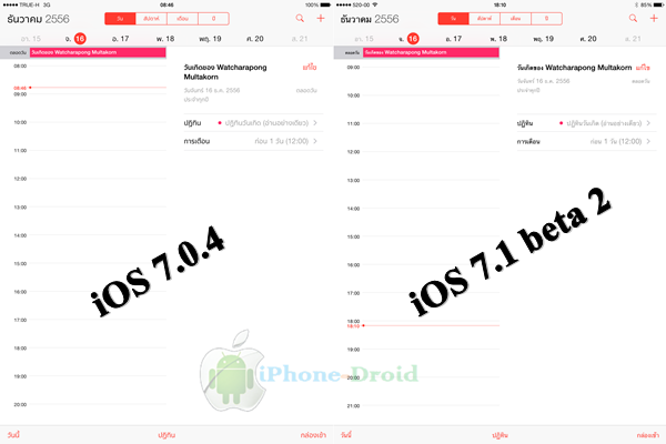 - การแสดงผลของปฏิทินไม่มีการเปลี่ยนแปลง แต่ด้วยแบบตัวอักษรภาษาไทยแบบใหม่ ทำให้การแสดงผลในหนึ่งหน้าจอมีพื้นที่แสดงผลมากขึ้น