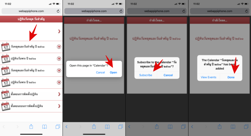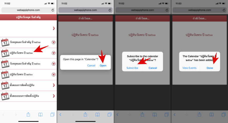 2. เลือกไปที่ วันหยุดและวันสำคัญ ปี ๒๕๖๑ > Open > Subscribe > Done