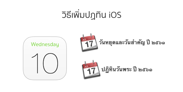 ถ้าในปี 2561 นี้ยังไม่ได้เพิ่ม ปฏิทินวันหยุด วันสำคัญ และวันพระ ปี 2561 ลงปฏิทินเครื่อง iPhone, iPod, iPad มีวิธีเพิ่มง่ายๆ มาฝากกันครับ