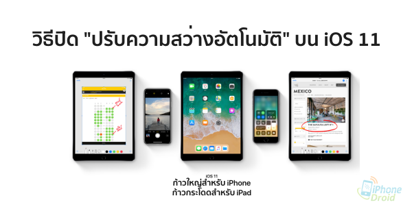 บน iOS 11 มีความเปลี่ยนแปลงในส่วนของเมนูต่างๆ เพิ่มฟีเจอร์ใหม่ๆ มาหลายอย่าง (ความเปลี่ยนแปลงทั้งหมด iOS) หลายๆ คนติดตั้งไปแล้วพบว่าเมนู “ปรับความสว่างอัตโนมัติ” หายไปจากเมนูเดิมที่เคยปิดบน iOS 10 มาดูวิธีปิดกันครับ ซึ่งไม่ได้หายไปไหนแต่อย่างใด เพียงแต่มันถูกย้ายเมนูไปไว้ที่อื่น