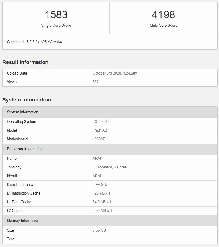 คะแนนการทดสอบบน Geekbench ของ iPad Air (2020) ที่ใช้หน่วยประมวลผล A14 Bionic ออกมาเป็นที่เรียบร้อยครับ หลังจากที่เปิดตัวไปในช่วงกลางเดือนกันยายนที่ผ่านมา โดยทำคะแนนได้อย่างประทันใจมาก