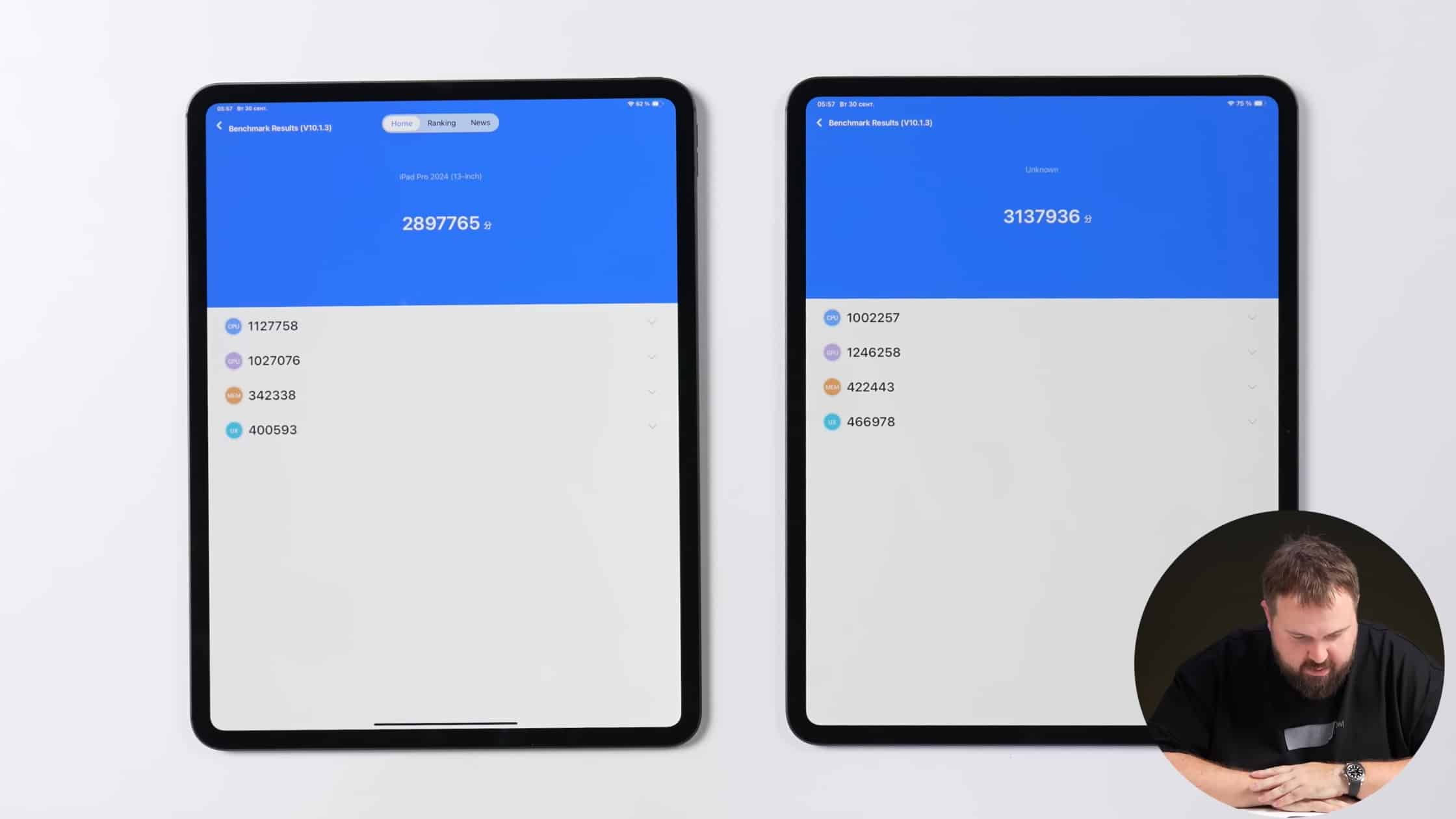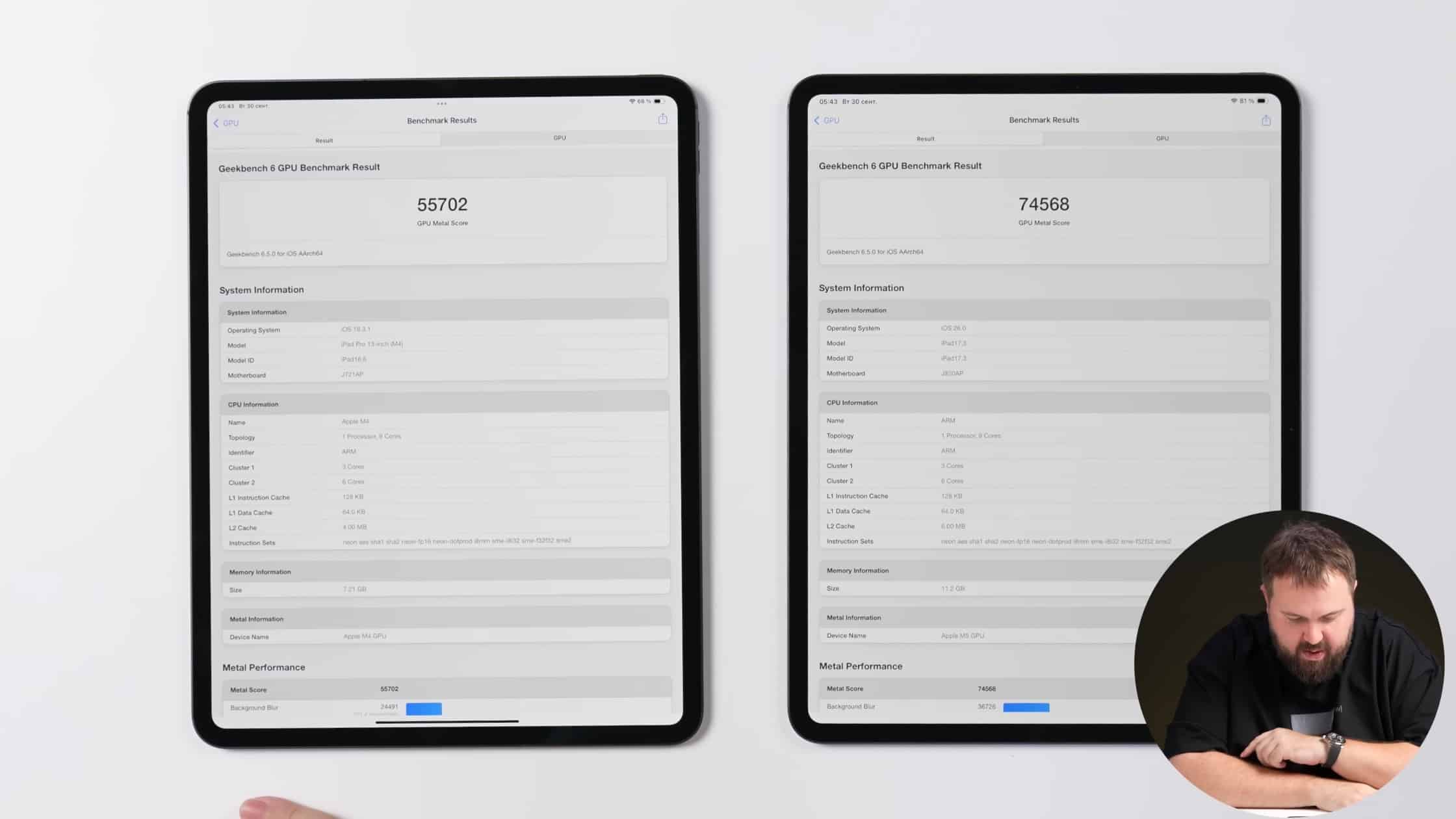 นอกจากให้ชมดีไซน์ภายนอกแล้ว เรายังได้เห็นการทดสอบประสิทธิภาพของแอป Geekbench และ AnTuTu เปรียบเทียบคะแนนกับ iPad Pro M4 ด้วย ซึ่งผลลัพธ์จะออกมาดังนี้ครับ