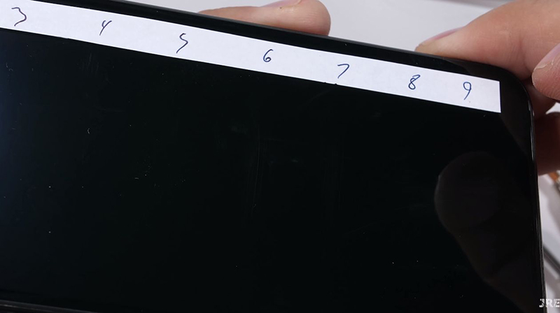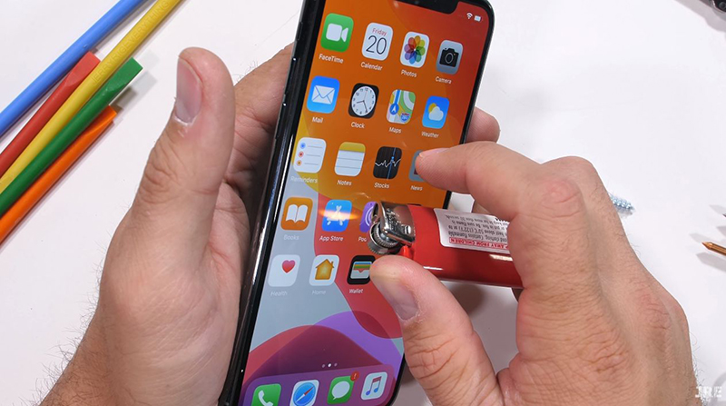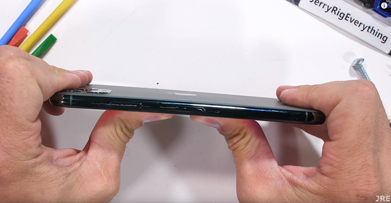 เริ่มด้วยการขูดหน้าจอแสดงผลตั้งแต่ 2 – 9 ระดับ โดย iPhone 11 Pro Max จะเริ่มเป็นรอยเมื่อขูดในระดับที่ 6 ขึ้นไป ซึ่งเป็นกันทุกรุ่นตามปกติ ต่อมาเป็นการขูดรอบเครื่องโดยใช้คัตเตอร์ ในส่วนที่เป็นกระจกจะไม่เกิดรอยทั้งสิ้น ยกเว้นเพียงส่วนที่เป็นวัสดุโลหะหรือสแตนเลส ชณะที่ด้านหลังที่เป็นผิวด้านจะขีดข่วนด้วยคัตเตอร์, ใบมีดโกน, เหรียญ, กุญแจ และตัวขีด ซึ่งก็ต้องใช้ของที่มีความคมมากๆ จึงจะทำให้เกิดรอย
