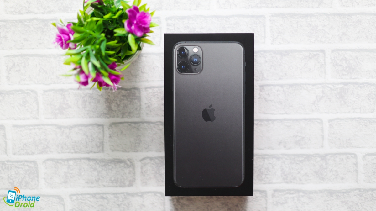 ตัวกล่องของ iPhone 11 Pro Max มาในสีดำเข้มครับ โดยที่ด้านหน้ากล่องจะมีรูปตัวเครื่องด้านหลังที่บ่งบอกถึงรุ่นล่าสุดได้เป็นอย่างดีด้วยโมดูลกล้อง