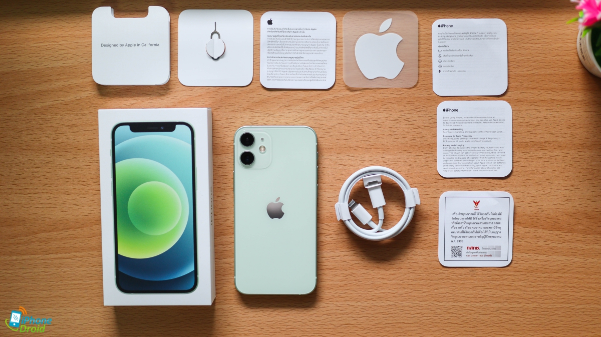 สำหรับตัวกล่องของ iPhone 12 mini นั้นถูกย่อขนาดให้เล็กลงเพื่อลดขยะในธรรมชาติลงครับ แทบจะเล็กลงกว่าเดิมครึ่งๆ เลยทีเดียว โดยได้ตัดอะแดปเตอร์ออกไปแล้วเช่นกัน ขณะที่ภายในกล่องมีดังนี้