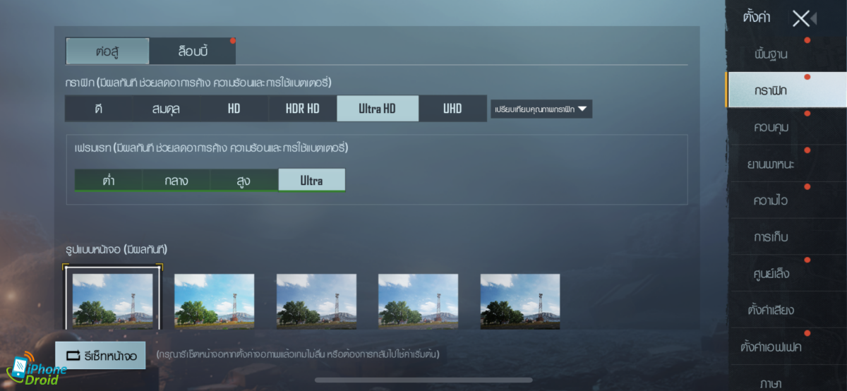 และสุดท้ายกับเกมแนว Battle Royale กันบ้างครับ โดย PUBG Mobile สามาถรปรับกราฟิกระดับ Ultra HD พร้อมกับเฟรมเรทระดับ Ultra ได้ และเล่นในโหมด 100 คน ได้สบายมากๆ