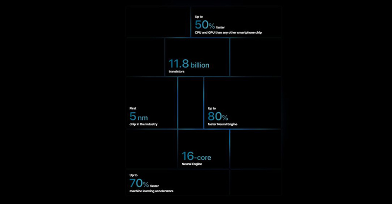 สำหรับ iPhone 12 Pro และ iPhone 12 Pro Max เป็นสมาร์ทโฟนรุ่นแรกของโลกที่มาพร้อมชิปขนาด 5 นาโนเมตรรุ่นแรกของโลกด้วย A14 Bionic ซึ่งเป็นชิปที่ขนานนามว่าแรงที่สุดในโลกของสมาร์ทโฟนตอนนี้เลยทีเดียว