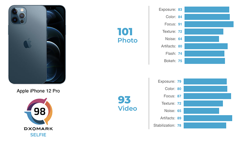 หลังจากเราทราบคะแนนกล้องหลังของ iPhone 12 Pro จาก DxOMark ไปแล้ว โดยอยู่ที่ 5 ของตาราง ล่าสุด คะแนนกล้องหน้าก็ออกมาเรียบร้อยแล้วครับ โดยรั้งอยู่ที่ 7 เท่ากับ Asus Zenfone 6 ด้วยคะแนน 98 คะแนน แบ่งเป็นคะแนนถ่ายภาพนิ่ง 101 คะแนน และถ่ายวิดีโอที่ 93 คะแนน