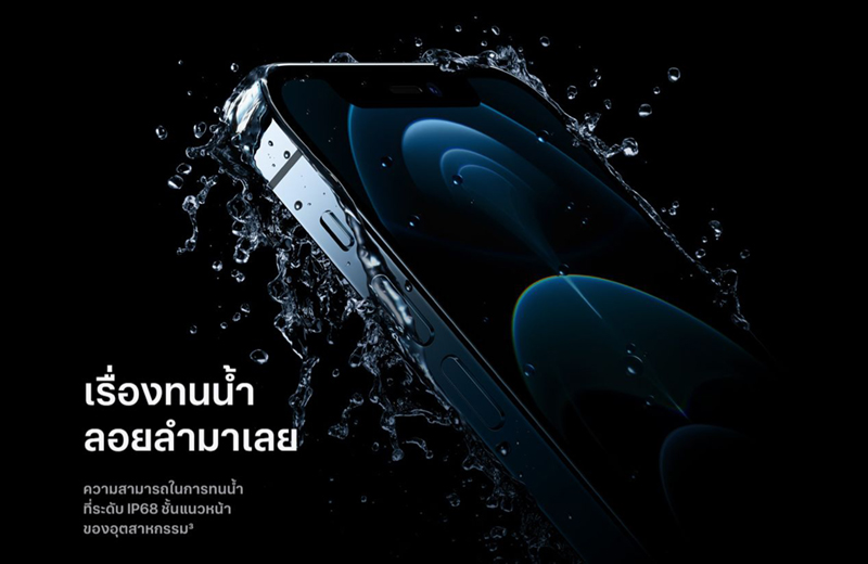 iPhone 12 Pro Max รองรับมาตรฐานกันน้ำแบบ IP68 เหมือนเดิมครับ แต่รองรับความลึกไม่เกิน 6 เมตร ภายในระยะเวลาสูงสุด 30 นาที