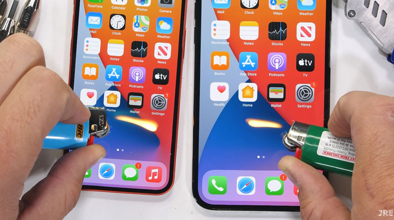 ต่อมาเป็นการรนด้วยไฟแช็คเวลาประมาณ 30 วินาที ที่ทั้งคู่สามารถทนต่อการพิกเซลหายได้ เหมือนกับ iPhone 12 Pro ที่ถูกทดสอบไปก่อนหน้านี้