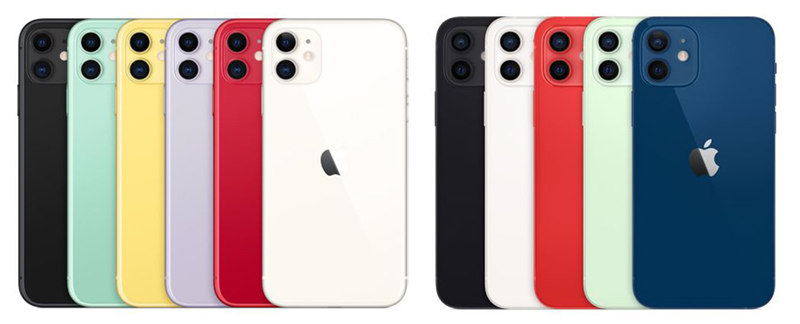 ส่วนเรื่องสี iPhone 12 และ iPhone 11 มีสีเหมือนกัน คือ ขาว, ดำ, เขียว และแดง (PRODUCT)RED โดย iPhone 11 จะมีสีอื่นๆ ได้แก่ เหลืองและม่วง ขณะที่ iPhone 12 จะมีสีหลักเป็นสีน้ำเงินเพิ่มเข้ามา