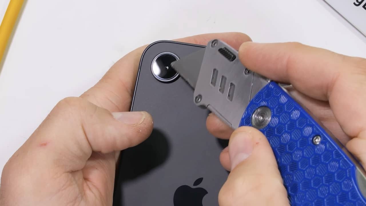 กรอบเครื่องอะลูมิเนียม ยังโดนคัตเตอร์กรีดเป็นรอยใกล้เคียงกับกรอบของสมาร์ทโฟนเรือธงรุ่นอื่น ๆ อันนี้ก็ถือว่าทนอยู่