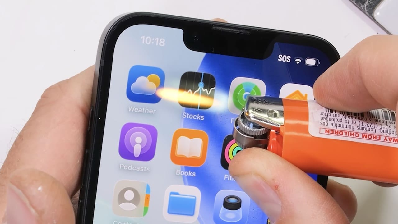 ด้านความทนทานต่อความร้อน จอของ iPhone 17e ก็เกิดความเสียหายได้หลังจากเอาไฟจ่อนาน 20 วินาที แต่ก็ไม่ได้เป็นความเสียหายรุนแรงครับ ค่อย ๆ ฟื้นตัวได้หลังจากผ่านไปไม่นาน