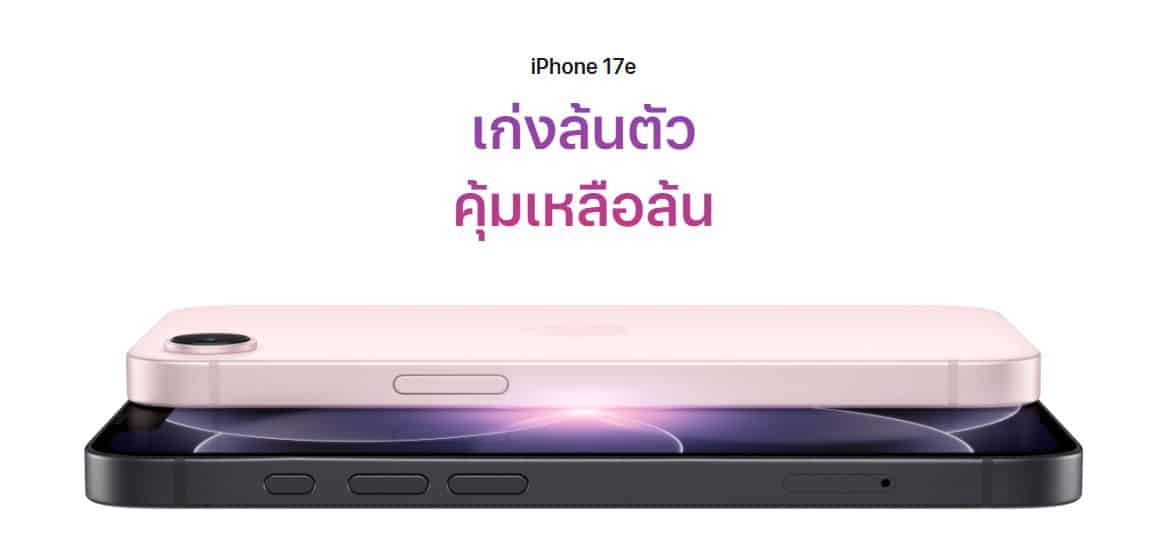 iPhone 17e มีทั้งหมด 3 สี คือ ชมพูอ่อน ขาว และดำ โดยมีราคารุ่น 256GB ที่ 22,900 บาท และรุ่น 512GB ที่ 30,900 บาท เริ่มเปิดสั่งซื้อล่วงหน้า 4 มี.ค. ตั้งแต่เวลา 21:15 น. และจะเริ่มวางจำหน่ายทางการ 11 มี.ค. นี้ครับ