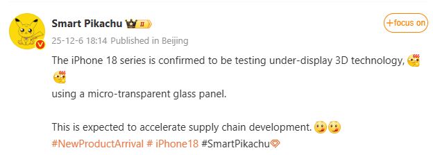 มีความเป็นไปได้มากขึ้นอีกครั้งในการเปลี่ยนแปลงของ iPhone 18 Pro ที่เหมือนว่าจะได้ Face ID ใต้หน้าจอเป็นครั้งแรกแล้วครับ โดยจอมแม่นในจีน Smart Pikachu เผยว่า Apple กำลังทดสอบการใช้ “กระจกไมโครทรานสเพรซเซอร์แบบต่อกัน” บนหน้าจอ