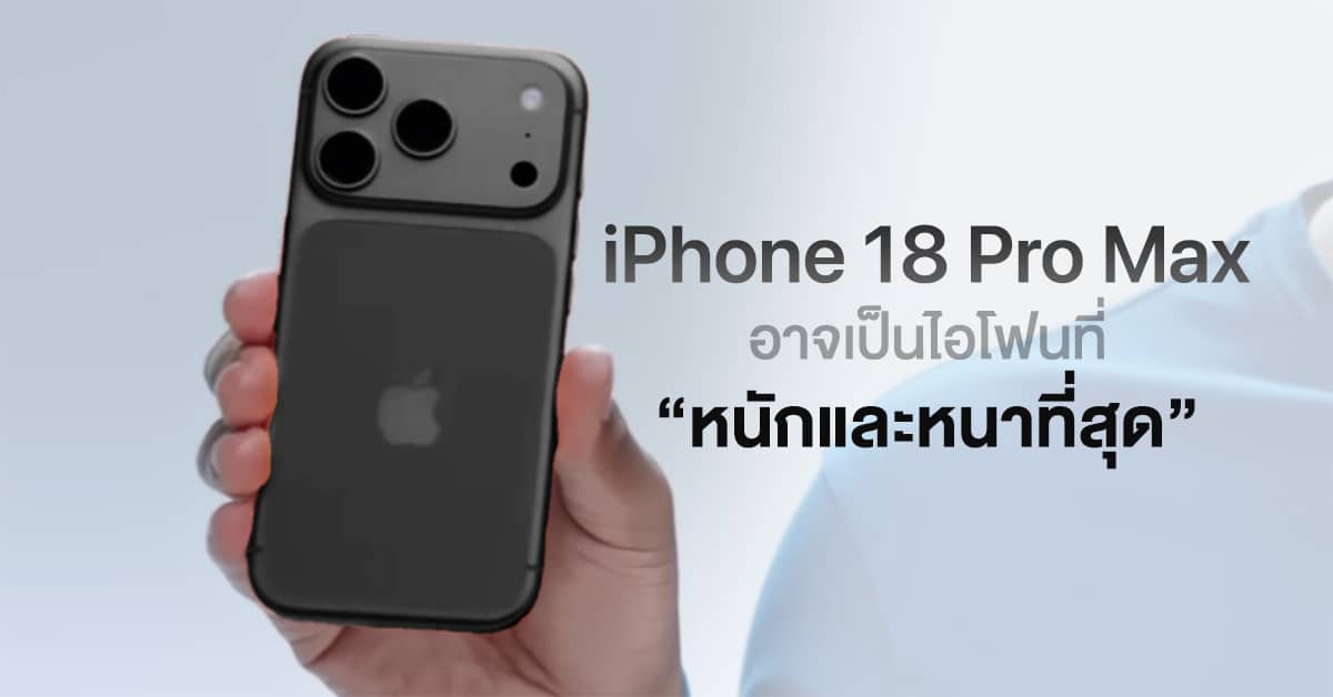 ใครที่คิดว่า iPhone 17 Pro Max ในปีนี้มีน้ำหนักเพิ่มขึ้นแล้วคาดหวังว่ารุ่นหน้าอาจปรับให้ลดลงได้หน่อย ก็อาจจะตกใจกับข่าวนี้ได้ เพราะมีรายงานว่า iPhone 18 Pro Max ในปีหน้าอาจมีน้ำหนักที่เพิ่มขึ้นอีก และกลายเป็นไอโฟนที่หนักที่สุดเลยด้วย!?