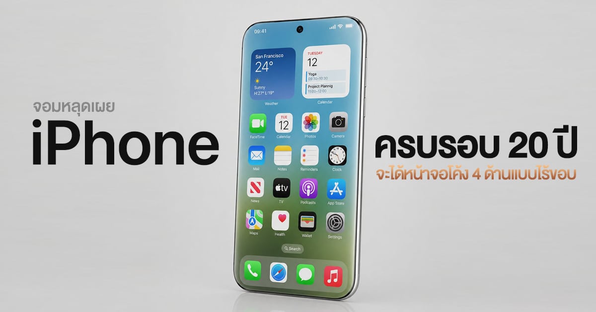 โดยจอมหลุดยืนยันว่า Apple จะร่วมกับ Samsung พัฒนาหน้าจอ OLED โค้ง 4 ด้านนี้ เพื่อใช้งานบน iPhone รุ่นครบรอบ 20 ปี ซึ่งความน่าสนใจคือจอใหม่นี้จะชิดกรอบเครื่องแบบที่ไม่มีขอบดำมากวนใจเลยครับ เพิ่ม Screen to Body ratio ขึ้นอีก จนใกล้เคียงกับคำว่าจอไร้ขอบ
