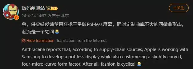 นอกจากนี้ @UniverseIce ก็ยังออกมาเสริมในเรื่องนี้ด้วยว่า จอโค้งของ iPhone รุ่นครบรอบนี้ จะไม่เหมือนกับจอโค้ง 4 ด้านของสมาร์ทโฟน Android ที่ผ่าน ๆ มา เพราะจะมีความโค้งน้อยมาก ทำให้แสดงผลได้เต็มตา แต่ก็ยังได้ความรู้สึกที่นุ่มนวลเวลาสัมผัสเช่นเดียวกับแนวคิด Liquid Glass ของ UI ใหม่