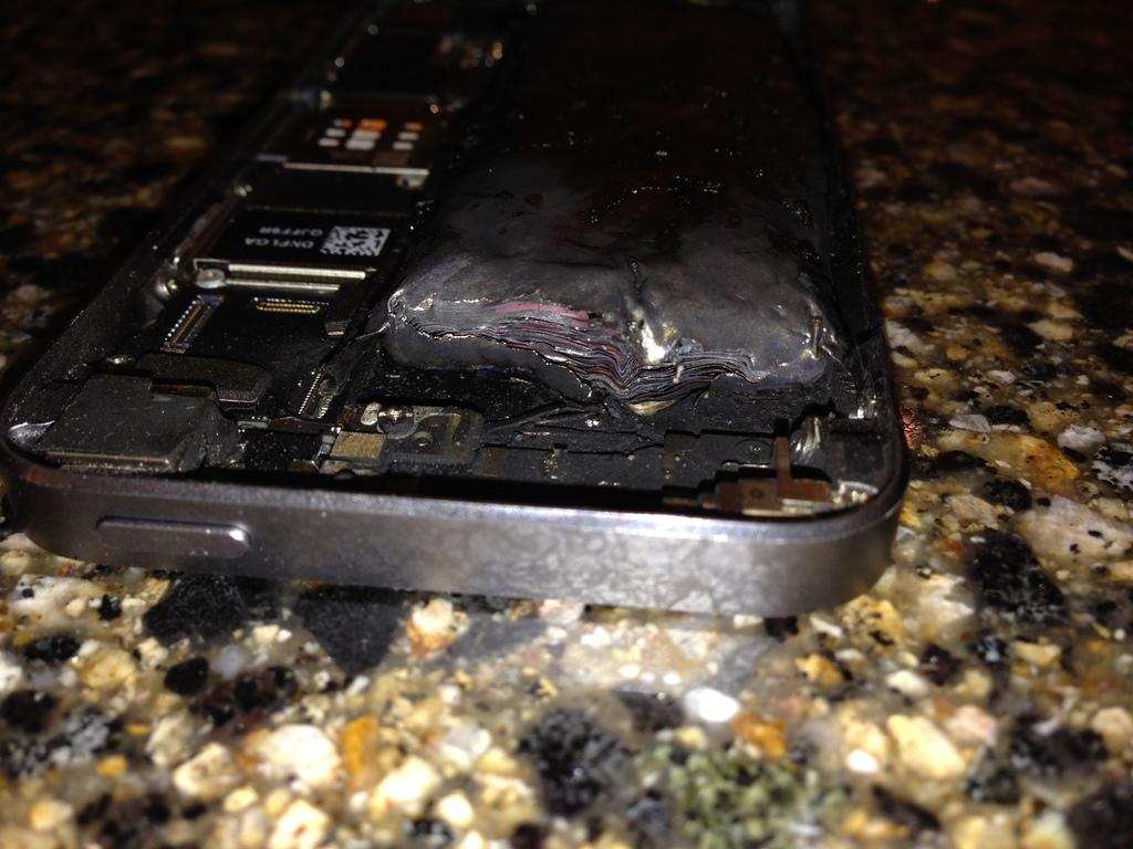 มีผู้ใช้รายหนึ่งในต่างประเทศโพสต์ในฟอรั่มของเว็บไซต์ macrumors อ้างว่าใช้ iPhone 5s เกิดควันไฟและลุกไหม้ขึ้น โดยเขาเล่าว่าเหตุการณ์ดังกล่าวเกิดขึ้นขณะเขาใช้งาน iPhone 5s หน้าจอนูนขึ้นมาเนื่องจากแบตเตอร์รี่บวมหลังจากนั้นก็เกิดควันไฟลุกขึ้น โดยภาพดังกล่าวที่เขาได้เอามาโพสต์จะเห็นได้ว่ามีควันไฟที่ตัวแบตเตอร์รี่